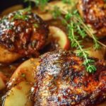 - Cook the Chicken: Season chicken thighs with salt, pepper, garlic powder, onion powder, and smoked paprika. Sear in a skillet, then add sliced apple and pour the glaze over the chicken. Bake until chicken is cooked through.