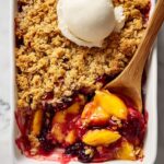 Once out of the oven, let the crisp cool for at least 10 minutes. This resting time lets the juices thicken up so your serving isn’t runny. Then scoop it onto plates and, if you like, top with a scoop of vanilla ice cream or a dollop of whipped cream to elevate the indulgence. Trust me, it’s well worth the extra step!