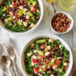 Keywords: Apple Cranberry Pecan Salad, kale salad, candied pecans, bacon salad, fall salad, healthy salad, feta cheese salad, autumn recipe
