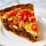 This Bacon Cheeseburger Pie is a delicious and hearty dish combining all the classic flavors of a cheeseburger baked in a flaky pie crust. Featuring lean ground beef, savory bacon bits, sharp cheddar cheese, and flavorful seasonings, this comforting pie is perfect for an easy dinner or a crowd-pleasing potluck dish.