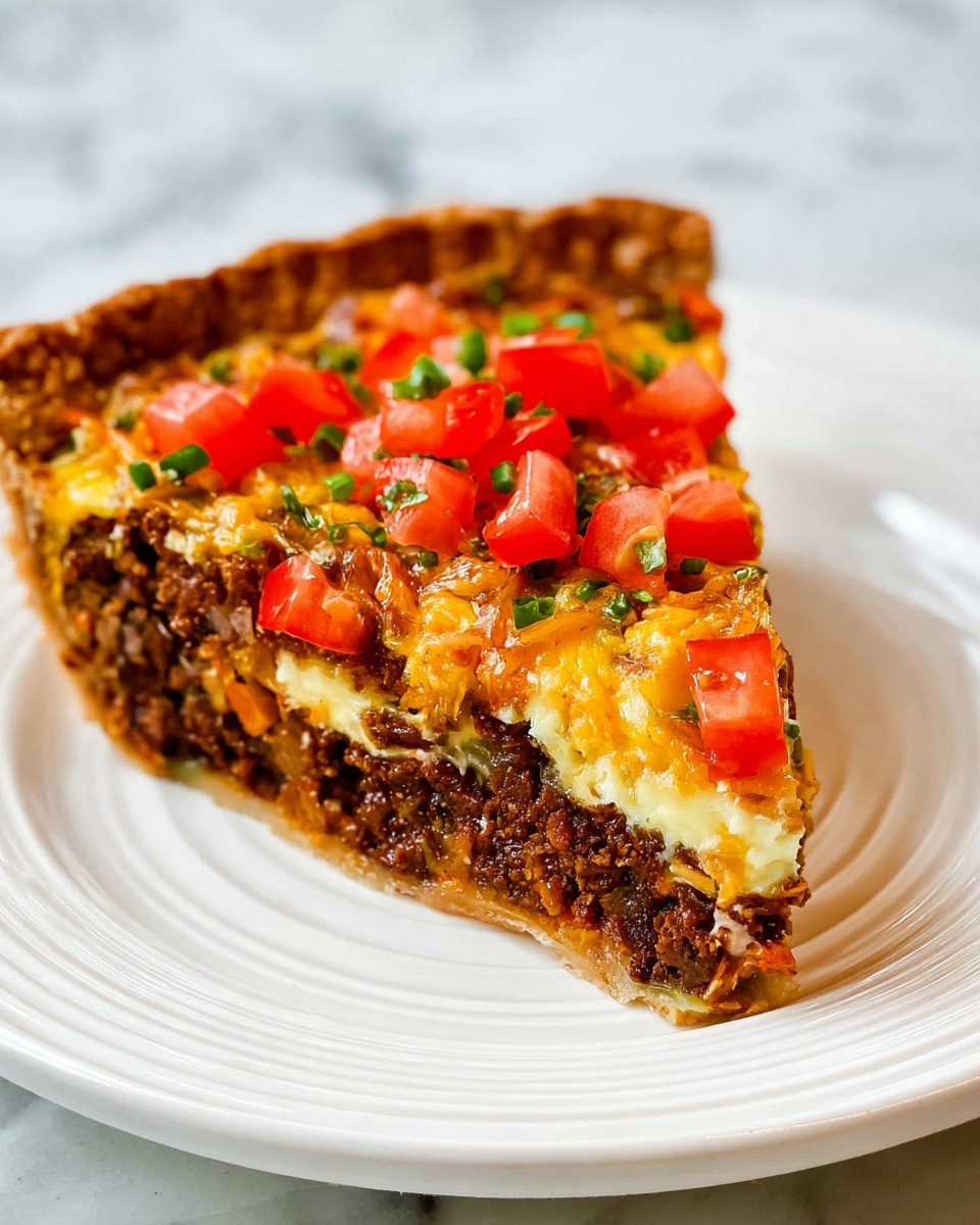 When I serve this pie, I love topping each slice with fresh shredded lettuce and a few sliced pickles to echo classic burger toppings. A dollop of ketchup or mustard on the side never hurts either, especially if you want that nostalgic burger vibe. If you’re feeling fancy, chopped green onions or a sprinkle of diced tomatoes add a fresh pop of color and flavor.