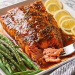 - Garnish and Serve: Remove the salmon from the oven and garnish with fresh lemon wedges. Serve immediately with your favorite sides for a delicious meal.