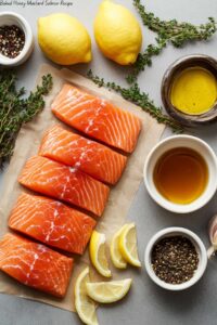 This Baked Honey Mustard Salmon recipe features tender and flaky salmon fillets coated in a flavorful honey mustard sauce made with Dijon mustard, honey, garlic, smoked paprika, and olive oil. Perfectly baked to lock in moisture and garnished with fresh thyme and lemon wedges, this dish is a quick and healthy dinner option that balances sweet and savory flavors beautifully.