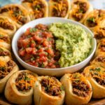 This Beef Taco Ring is a fun and flavorful twist on traditional tacos, featuring seasoned ground beef and melted cheddar cheese wrapped in a golden crescent roll ring. Perfect for parties or a casual family dinner, it’s served with fresh guacamole, salsa, and shredded lettuce for dipping and topping.