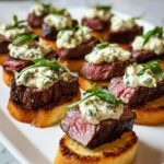 - Garnish and Serve: Garnish with freshly chopped parsley for color and freshness. Serve immediately while the crostini are crisp and the beef warm.