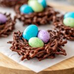 Grab a couple of large spoons and scoop generous spoonfuls onto parchment paper or a silicone baking mat. I like silicone liners because they make cleanup a breeze. Then, carefully shape each mound into a nest by pressing the center lightly to create an indentation — perfect for holding your candy eggs. Don’t worry if they aren’t perfect circles; the rustic look adds to the charm!