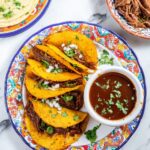 I always top my birria tacos with finely chopped white onion and fresh cilantro—that fresh crunch and herbal brightness contrast beautifully with the rich meat. And don’t forget a good squeeze of lime juice—that little burst of acidity lightens everything up and ties the flavors together perfectly.