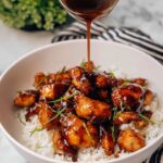 - Serve and Garnish: Serve the bourbon chicken over your choice of rice and garnish with freshly chopped chives for a burst of color and mild onion flavor.