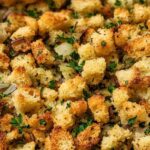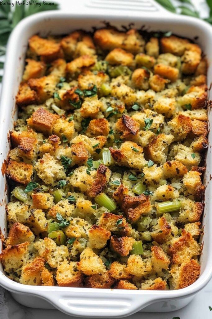 This Buttery Herb Stuffing Recipe is a flavorful and aromatic side dish perfect for holiday gatherings. With a mix of fresh herbs, garlic, and buttery bread cubes, this stuffing is sure to be a hit at your next dinner table.