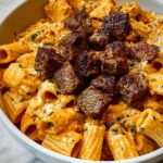 Oh, you’re going to love this Cajun Steak Tips in Cheesy Rigatoni Parmesan Sauce Recipe—it’s seriously one of those meals that feels both special and comforting at the same time. The rich, creamy sauce clings perfectly to the rigatoni, and those spicy Cajun-seasoned steak tips give it such a delicious kick that keeps you coming back for more. Whenever I want something that feels indulgent but is still pretty straightforward, this dish is my go-to.