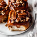 Keywords: cinnamon rolls, caramel pecan rolls, homemade cinnamon rolls, salted caramel sauce, pecan dessert, sweet breakfast rolls
