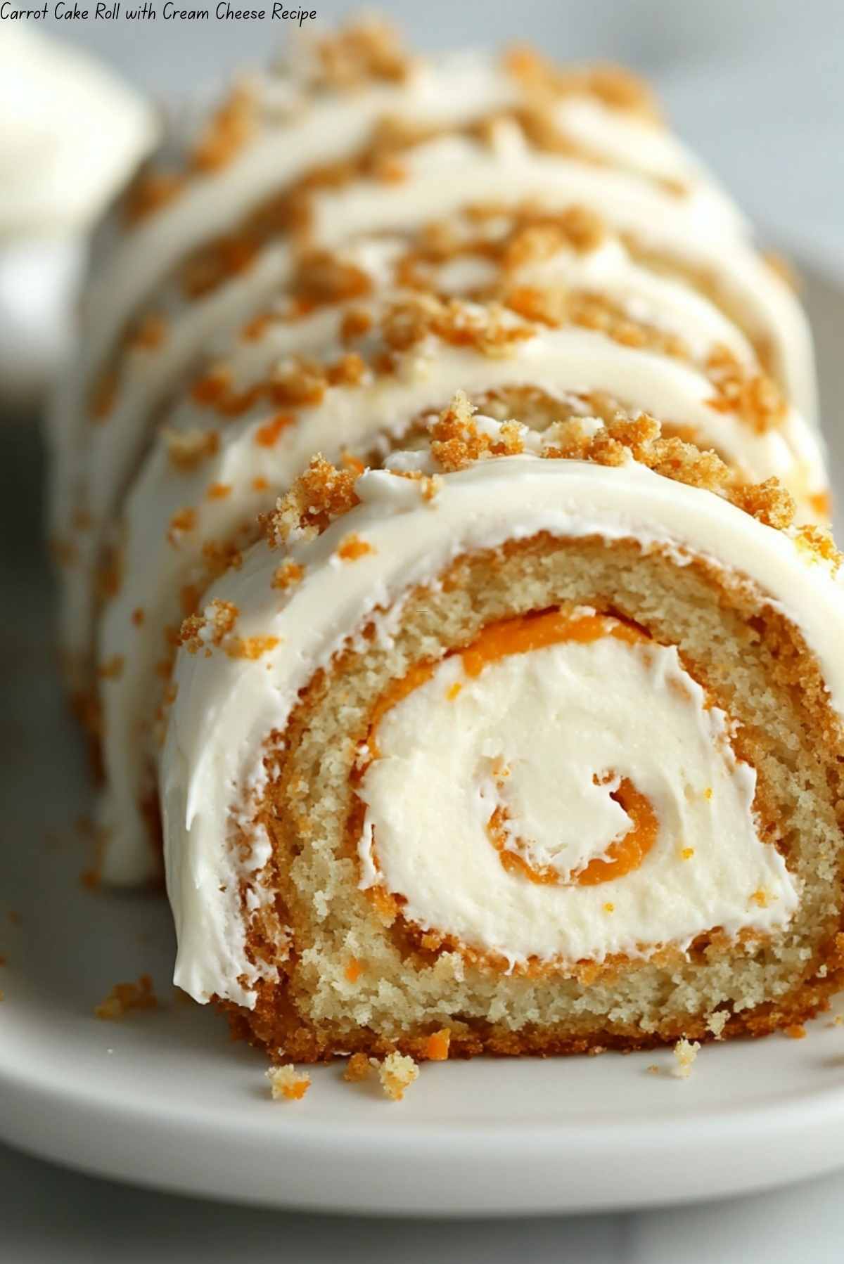 - Slice and serve the carrot cake roll with cream cheese frosting.