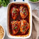Pop your baking dish in the oven (center rack) and bake uncovered for 25 to 30 minutes. The chicken should reach 165°F internally, so I always recommend keeping a meat thermometer handy just to be safe. If you want to jazz it up, switch your oven to broil for 2 minutes at the end to get the sauce bubbling and slightly caramelized — but watch carefully to avoid burning.