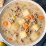 Keywords: cheeseburger soup, ground beef soup, creamy soup, bacon soup, cheddar cheese soup, comfort food