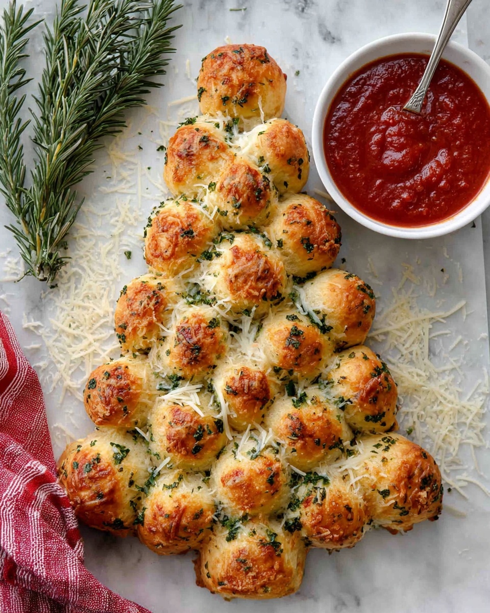 This Cheesy Christmas Tree Bread is a festive and delicious appetizer perfect for holiday gatherings. Made with pizza dough, mozzarella sticks, fresh herbs, and garlic, this pull-apart bread is shaped like a Christmas tree and baked to golden perfection. Served with marinara or pesto dipping sauces, it’s sure to impress your guests with both its presentation and flavor.