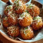 Cheesy Parmesan Potato Balls are crispy golden bites filled with creamy mashed potatoes and gooey mozzarella cheese. Perfect as a snack or appetizer, these potato balls are coated with breadcrumbs and fried to perfection, then garnished with fresh parsley and extra Parmesan for an irresistible finish.