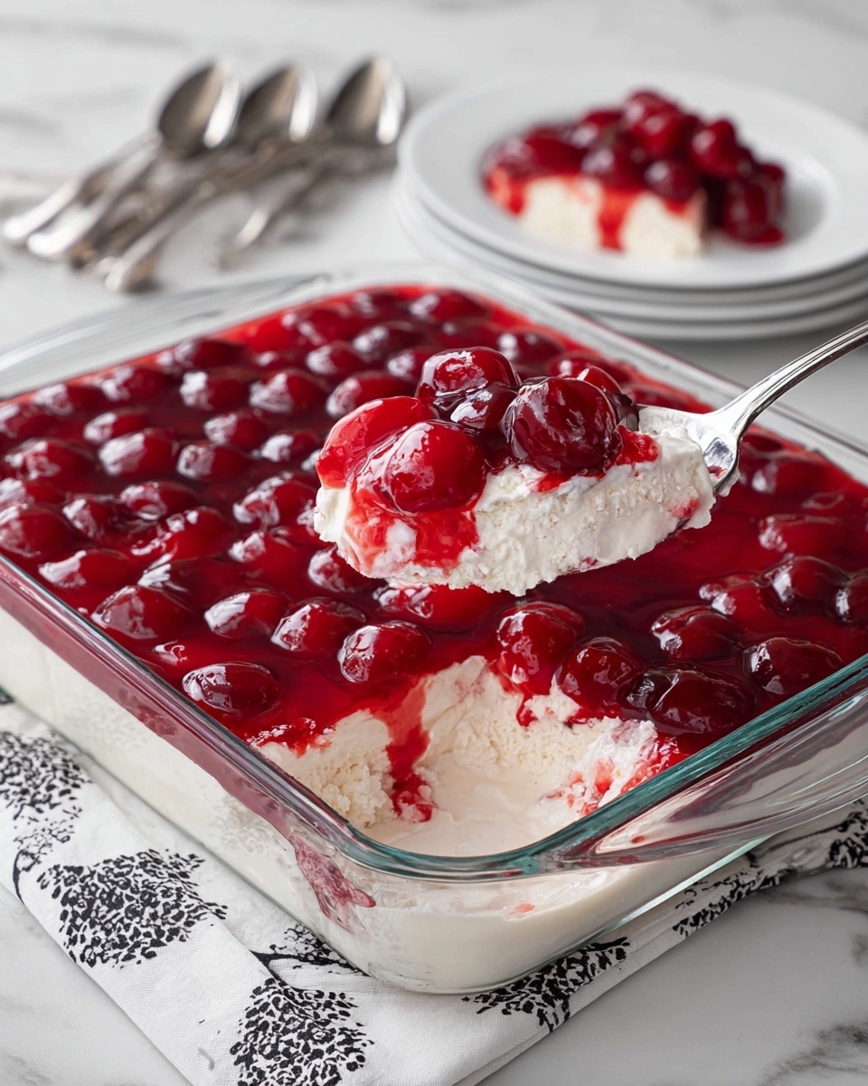 What I love most about this Cherries in the Snow Recipe is that it’s surprisingly easy to pull together, yet looks fancy enough to wow guests. The combination of cream cheese, whipped topping, and fluffy angel food cake makes every bite feel like clouds with a burst of cherry goodness. Trust me, you’re going to want this recipe saved in your go-to dessert folder.
