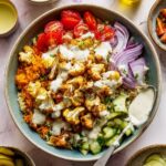 - Make it vegan: Swap chicken for roasted cauliflower or chickpeas and replace tahini dressing with a lemony hummus dressing.