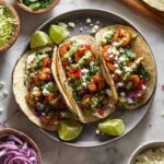 These Chimichurri Shrimp Tacos are a vibrant and flavorful meal featuring succulent shrimp seasoned with aromatic spices, topped with a zesty herbaceous chimichurri sauce, creamy avocado slaw, and garnished with fresh vegetables and crumbly Cotija cheese. Perfect for a quick, delicious dinner that brings a bright, fresh twist to classic shrimp tacos.