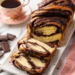 This Chocolate Babka recipe is a rich, braided sweet bread filled with a decadent chocolate filling and topped with a glossy sugar syrup. The dough is tender and buttery, enriched with eggs and milk, and the filling is a luscious blend of dark chocolate, cocoa, and powdered sugar. After baking, the babka is brushed with a simple syrup for a shiny finish and moist crumb. Perfect for a brunch treat or dessert, this recipe yields two 8×4-inch loaves that serve 16 slices.