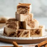 - Add Cinnamon Sugar Topping: Sprinkle half of the cinnamon sugar evenly over the fudge, then gently swirl it into the fudge using a skewer or the tip of a knife to create a marbled effect. Sprinkle the remaining cinnamon sugar evenly on top.