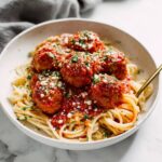Classic spaghetti with marinara sauce is the dream team here, of course. But I’ve also enjoyed pairing these meatballs with creamy polenta, garlic mashed potatoes, or crusty Italian bread to soak up all that sauce. Roasted vegetables or a simple green salad round out the meal beautifully.