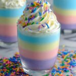 - Add Toppings: Once all layers are set, top each cup with a generous swirl of whipped cream. Decorate with colorful sprinkles and place a twisty lollipop in each, resembling unicorn horns for a whimsical finish.