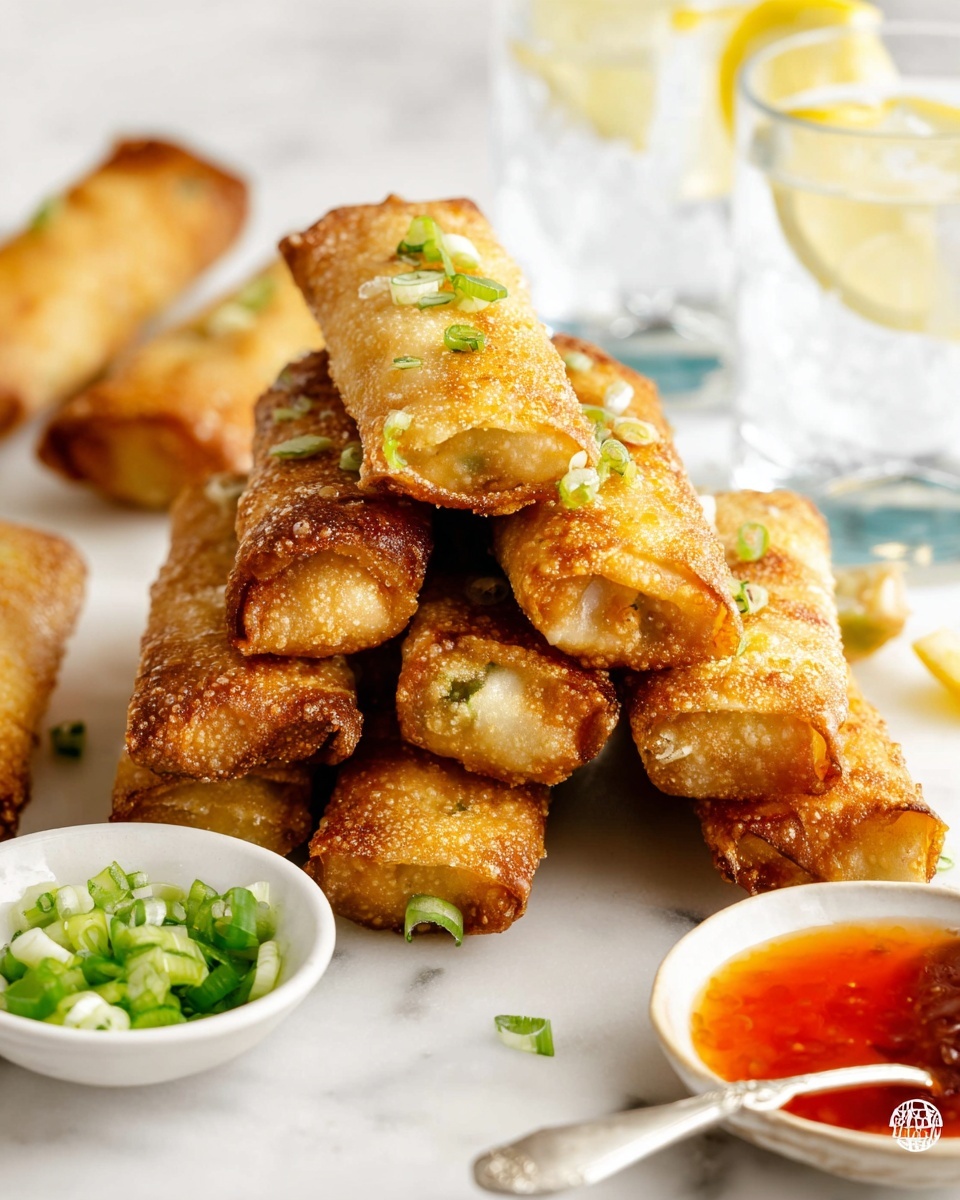 I usually sprinkle a bit of thinly sliced green onions over the top as a simple, fresh garnish. It adds a little pop of bright color and a mild onion crunch that balances the richness of the eggrolls beautifully.