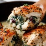This Cranberry and Brie Stuffed Chicken recipe combines tender chicken breasts with creamy brie cheese, sweet dried cranberries, and fresh spinach for a flavorful and elegant dish. The stuffing is infused with garlic, onion, and thyme, while the chicken is carefully pan-fried to perfection, sealing in all the juicy flavors. Ideal for a special dinner or cozy meal, this recipe offers a delightful balance of savory and sweet in every bite.
