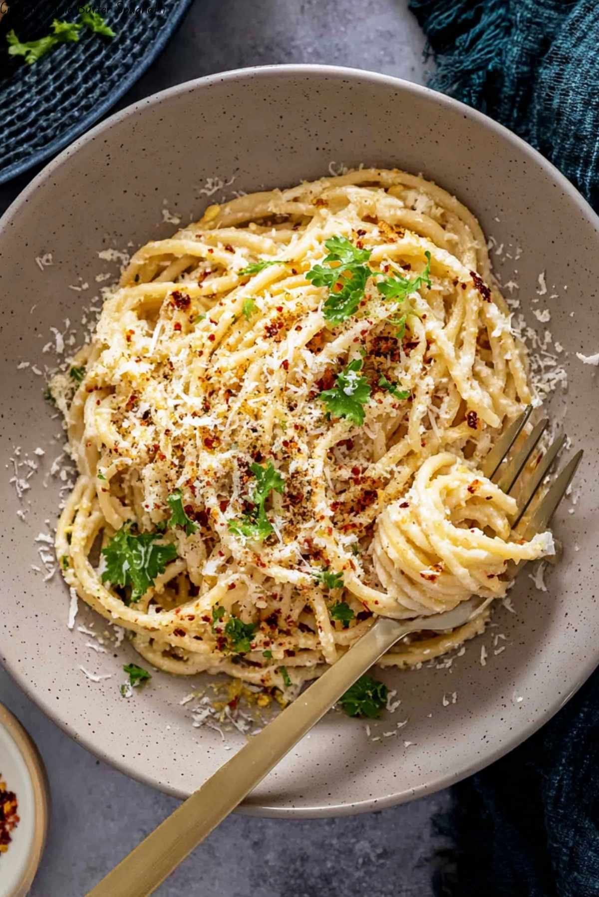 Indulge in the rich flavors of this Creamy Garlic Butter Spaghetti, where al dente spaghetti is coated in a velvety garlic butter sauce with a hint of white wine and finished with a sprinkle of Parmesan cheese and red pepper flakes.