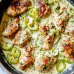 This Creamy Pepperoncini Chicken Skillet is a delicious and easy one-pan meal featuring tender chicken thighs simmered in a flavorful sauce made with sliced pepperoncini, garlic, chicken broth, and heavy cream. It’s perfect for a quick weeknight dinner and pairs wonderfully with rice, pasta, or a fresh salad for a complete meal.