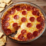 This Pepperoni Dip is a creamy, savory appetizer perfect for parties or casual gatherings. It combines softened cream cheese, tangy sour cream, Italian herbs, pizza sauce, and melted cheese with zesty sliced pepperoni, baked until bubbly and golden. Serve it warm with crackers, bread, or veggies for a crowd-pleasing treat.