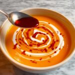 Using an immersion blender is my favorite here because it cuts down on dishes, but you can use a regular blender too (blend in batches and let it cool slightly first!). Blend the soup until it’s completely smooth, then stir in the creamy coconut milk. Taste and adjust seasoning — sometimes I like a little more salt or a splash more chili oil depending on mood. If it feels too thick, just add a touch more broth or water.