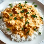 Scoop a bed of your fluffy rice onto plates, slide the smothered chicken on top, and drizzle more sauce over everything. Sprinkle with fresh chopped parsley for a pop of color and freshness. And just like that, dinner is served — creamy, comforting, and totally satisfying.