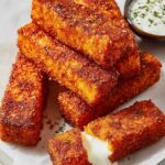 These Crispy and Spicy Nashville Hot Mozzarella Sticks combine gooey, melted mozzarella with a bold, fiery Nashville-style hot sauce glaze. Double coated in seasoned breadcrumbs and fried to golden perfection, then dipped in a spicy, buttery cayenne glaze, these snacks are perfect for game day or any craving for spicy comfort food.