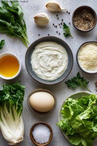 - Prepare Caesar Dressing: In a medium bowl, whisk together full-fat mayonnaise, Greek yogurt, Dijon mustard, Worcestershire sauce, lemon juice, freshly grated Parmesan, minced garlic, black pepper, and salt until smooth and creamy. Set aside to blend flavors.