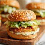 These Crispy Chicken Caesar Sliders are a delightful twist on the classic Caesar salad, featuring perfectly breaded and fried chicken cutlets nestled inside toasted buns with a creamy homemade Caesar dressing and fresh romaine lettuce. Crisp, savory, and packed with flavor, they make a perfect appetizer or meal for gatherings.
