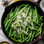 This Crispy Garlic Parmesan Green Beans recipe is a delicious and easy side dish featuring fresh green beans roasted to perfection with olive oil, garlic, and topped with melted Parmesan cheese. Perfectly crispy and bursting with flavor, it’s a nutritious addition to any meal or a tasty snack on its own.