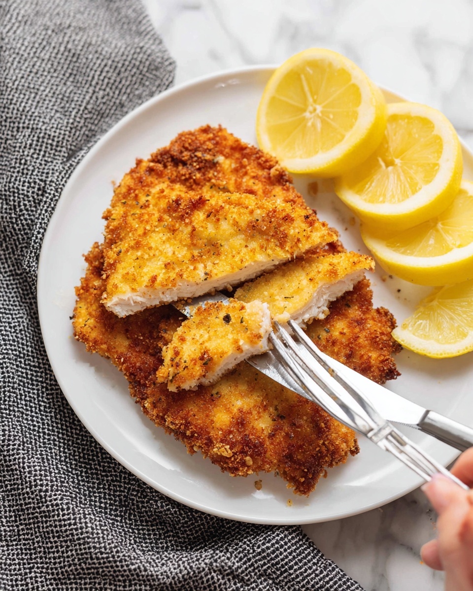 Once cooked, transfer the chicken to a paper towel-lined plate to drain any excess oil and rest for a few minutes. This brief rest lets the juices redistribute, keeping the chicken juicy inside while the crust stays snappy. Serve warm with fresh lemon wedges on the side to squeeze over—this simple addition brightens every bite.