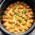 Cover the crock pot with a paper towel first to absorb any condensation, then place the lid on top. Cook on HIGH for 3 hours or LOW for 5-6 hours, until the chicken hits 165°F and everything is bubbling and golden. The aroma that fills your kitchen right before it’s done? Pure comfort food magic. Keep an eye near the end and poke public the tots—they should be tender but still hold their shape.