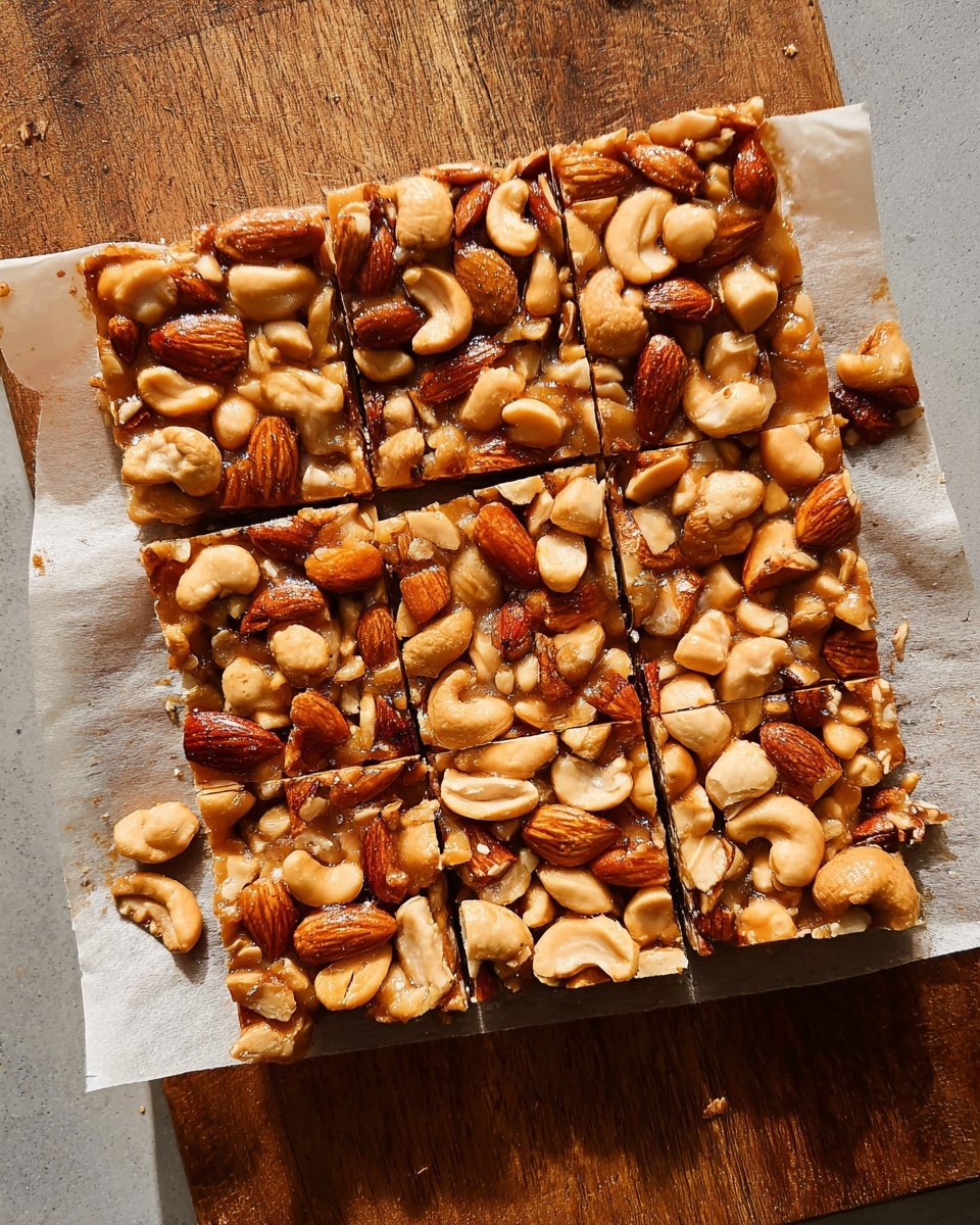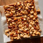 - Form Bars: Line an 8×8-inch pan with parchment paper for easy removal. Transfer the nut mixture into the pan and press it firmly down with a spatula or your hands to create an even and compact layer.