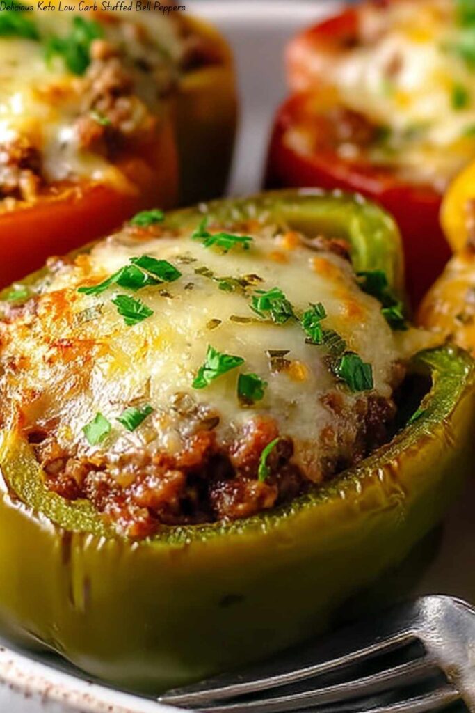 These Delicious Keto Low Carb Stuffed Bell Peppers are a flavorful and healthy twist on a classic dish. Packed with lean ground beef, cauliflower rice, and melted cheese, these stuffed peppers are a satisfying meal for anyone following a low-carb or keto diet.