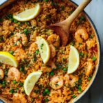 - Serve: Plate the shrimp and rice mixture, spoon over the garlic butter sauce, and garnish with chopped parsley and lemon slices for a fresh, vibrant finish.