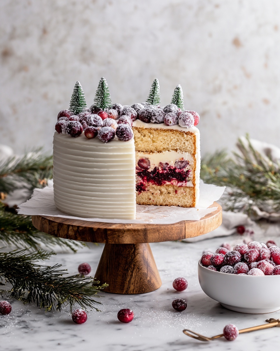 The last Christmas I made this cake, I placed it on a rustic wooden board surrounded by pinecones and fairy lights—it instantly became a stunning centerpiece. For smaller gatherings, you can bake the layers in mini pans and create individual servings decorated with the cranberry sauce and frosting swirl on top. Either way, it’s festive and elegant!