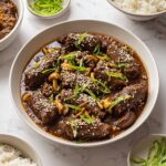 - Finish the dish: Place cooked beef rolls on a serving plate, pour the warm sauce over them, and garnish with diced green onion and sesame seeds for an extra burst of flavor and texture.