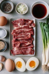 - Thinly sliced beef: Go for ribeye or sirloin for tenderness; ask your butcher to slice it thinly if purchasing fresh.