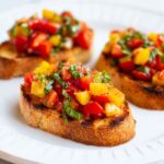 - Serve: Arrange the bruschetta on a serving platter and serve immediately for best texture combination of crispy toast and juicy topping.