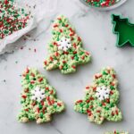 These Christmas Rice Krispie Treats are festive, colorful, and quick to make, combining classic marshmallow and cereal with green food coloring and holiday-themed sprinkles or red hots to celebrate the season.