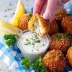 - Serve: Arrange the crab balls on a serving platter and provide tartar sauce, lemon wedges, and hot sauce on the side for dipping and added flavor.