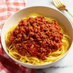 I’ve frozen this spaghetti before, but I recommend freezing the sauce and pasta separately if you can. This way, when you thaw and reheat, the spaghetti stays firm and doesn’t get mushy. Freeze in freezer-safe containers or heavy-duty bags for up to a month.